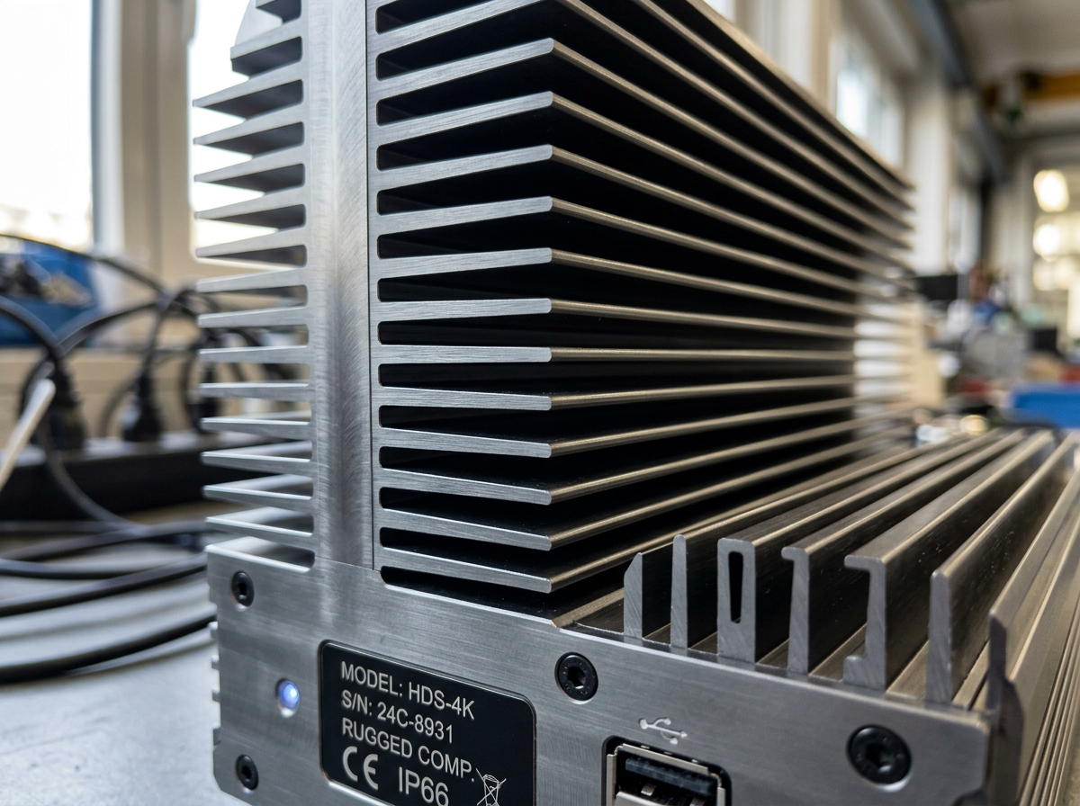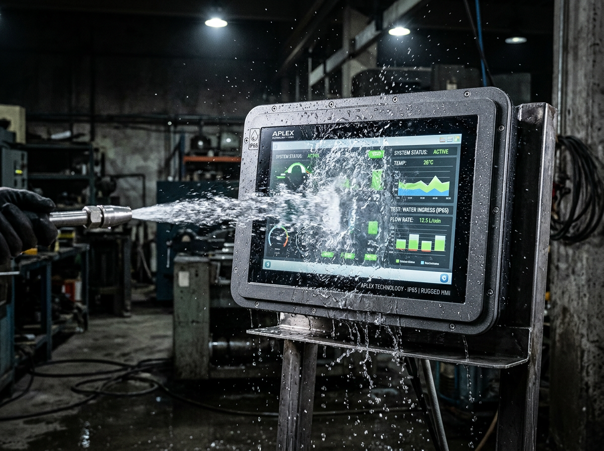 传统的机械风扇散热在多尘环境下极易失效,导致内部电路过热或短路。主流的工业触摸一体机厂家倾向于采用全铝合金机身配合无风扇散热结构,利用金属外壳的大面积导热性实现静音且长效的温控。此外,前面板达到 IP65 级密封标准,能够有效抵御水渍、油污及粉尘的侵蚀,确保在潮湿或严苛的工业现场依然稳健运行。